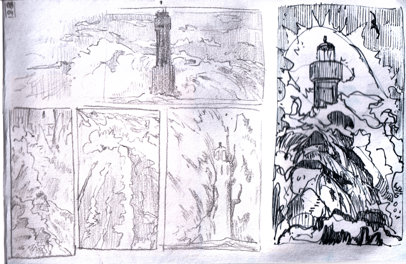 Here are a few study sketches for a new project we’re starting with a dear friend, involving lighthouses. These mark some of the last additions to the two sketchbooks I have been trying to complete !