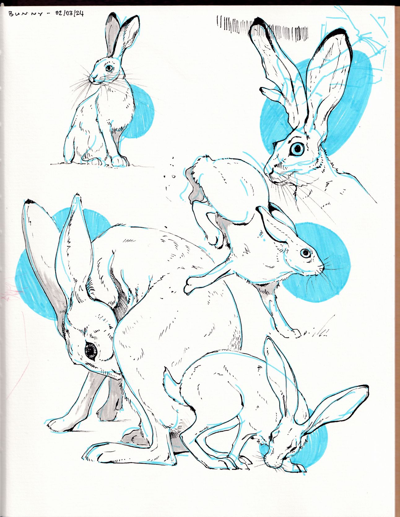 Here are some little sketches from this month ! Some hare studies for a still quite late Lunar New Year image.