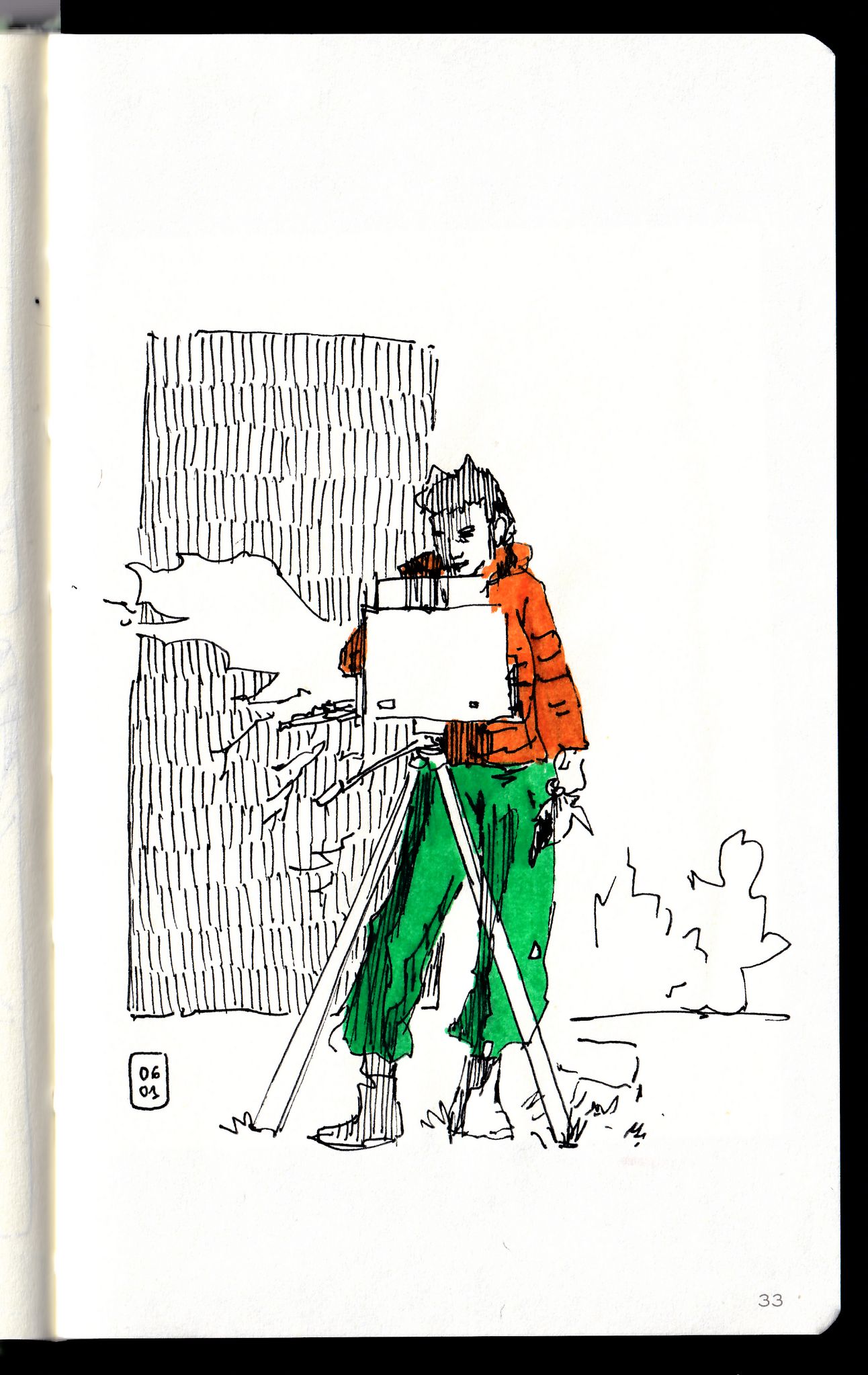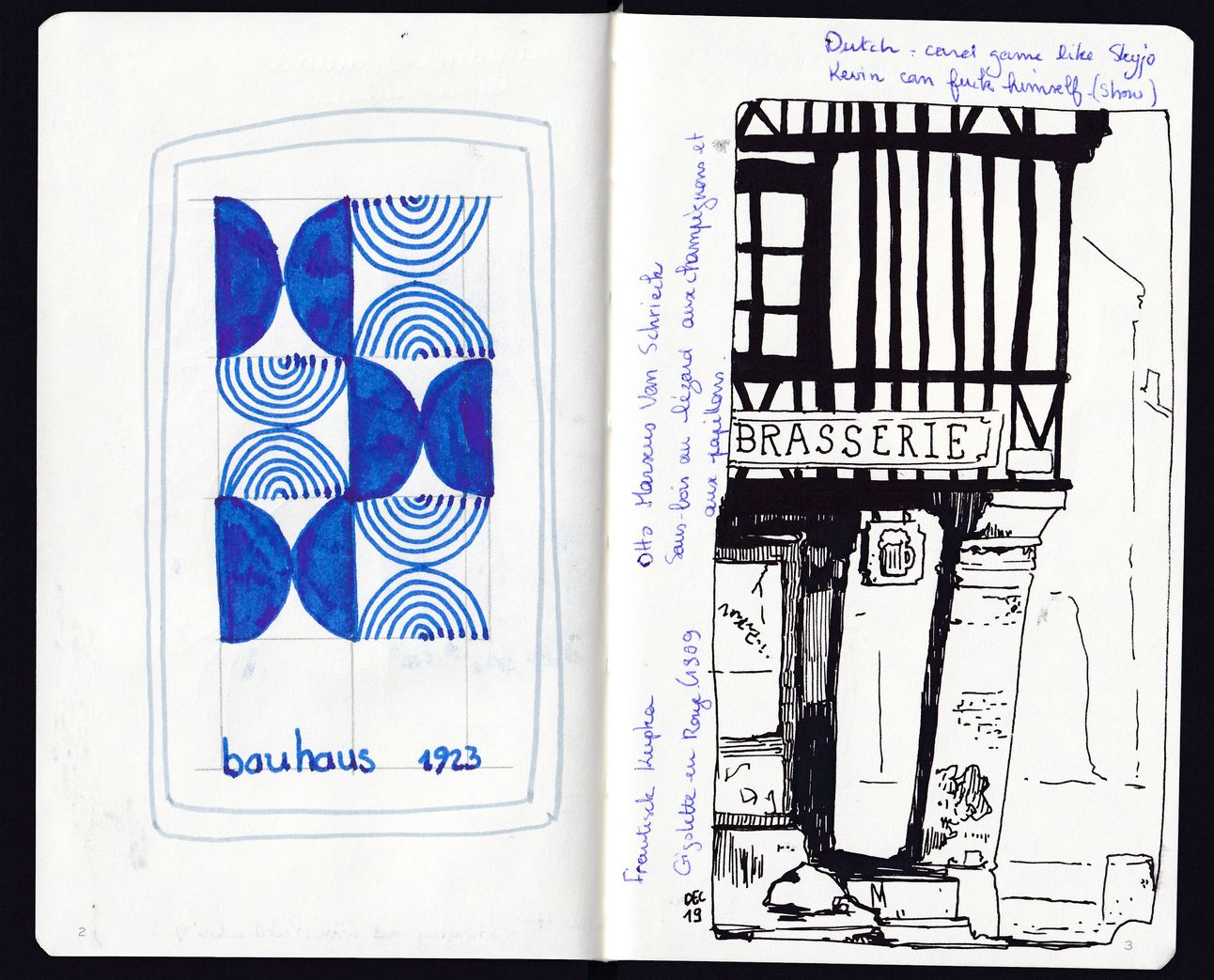 While everything is slowly coming together, let’s have a look at the first chunk of this sketchbook, that I bought and started during my trip to France this past winter.
