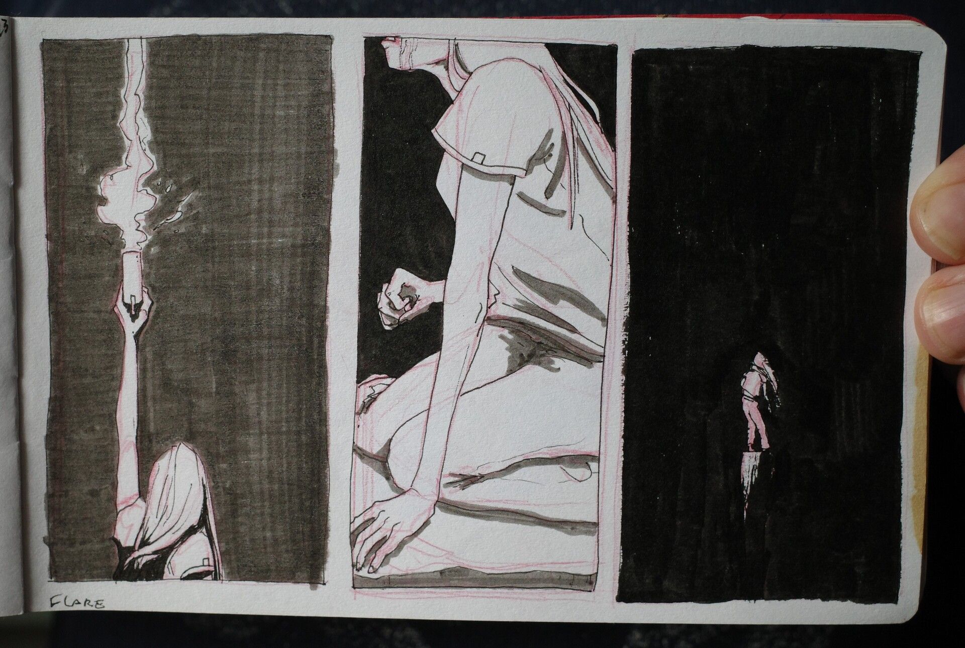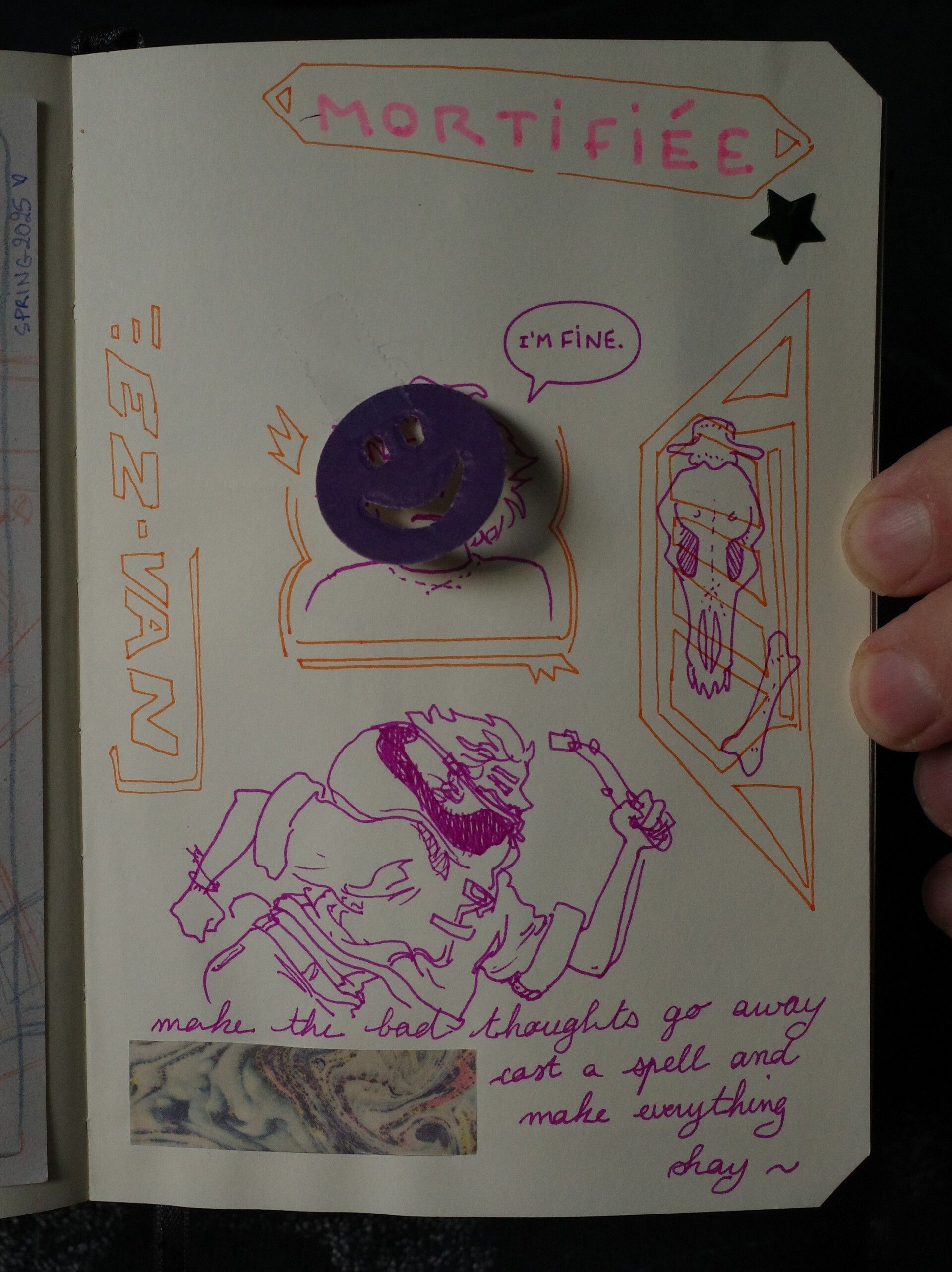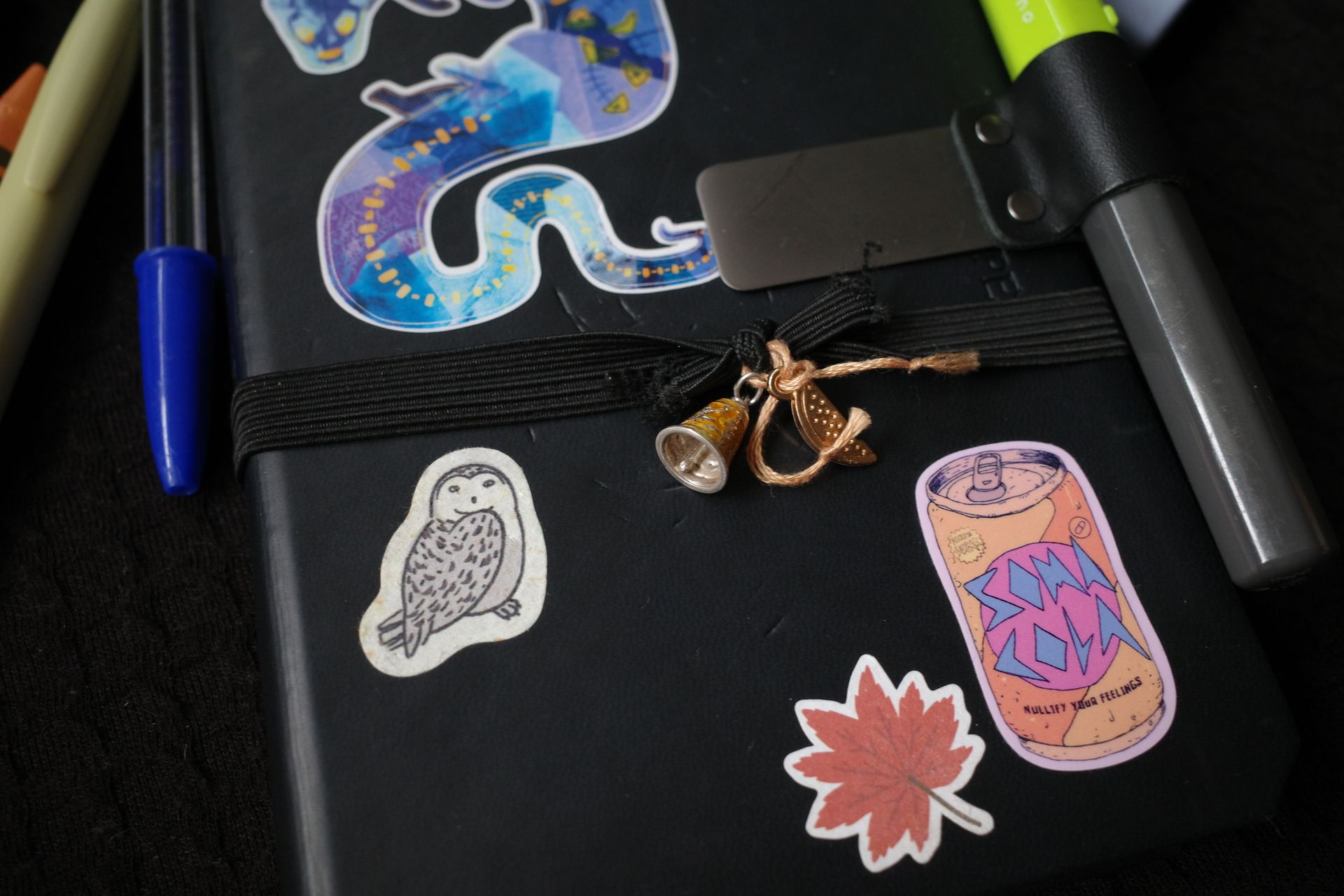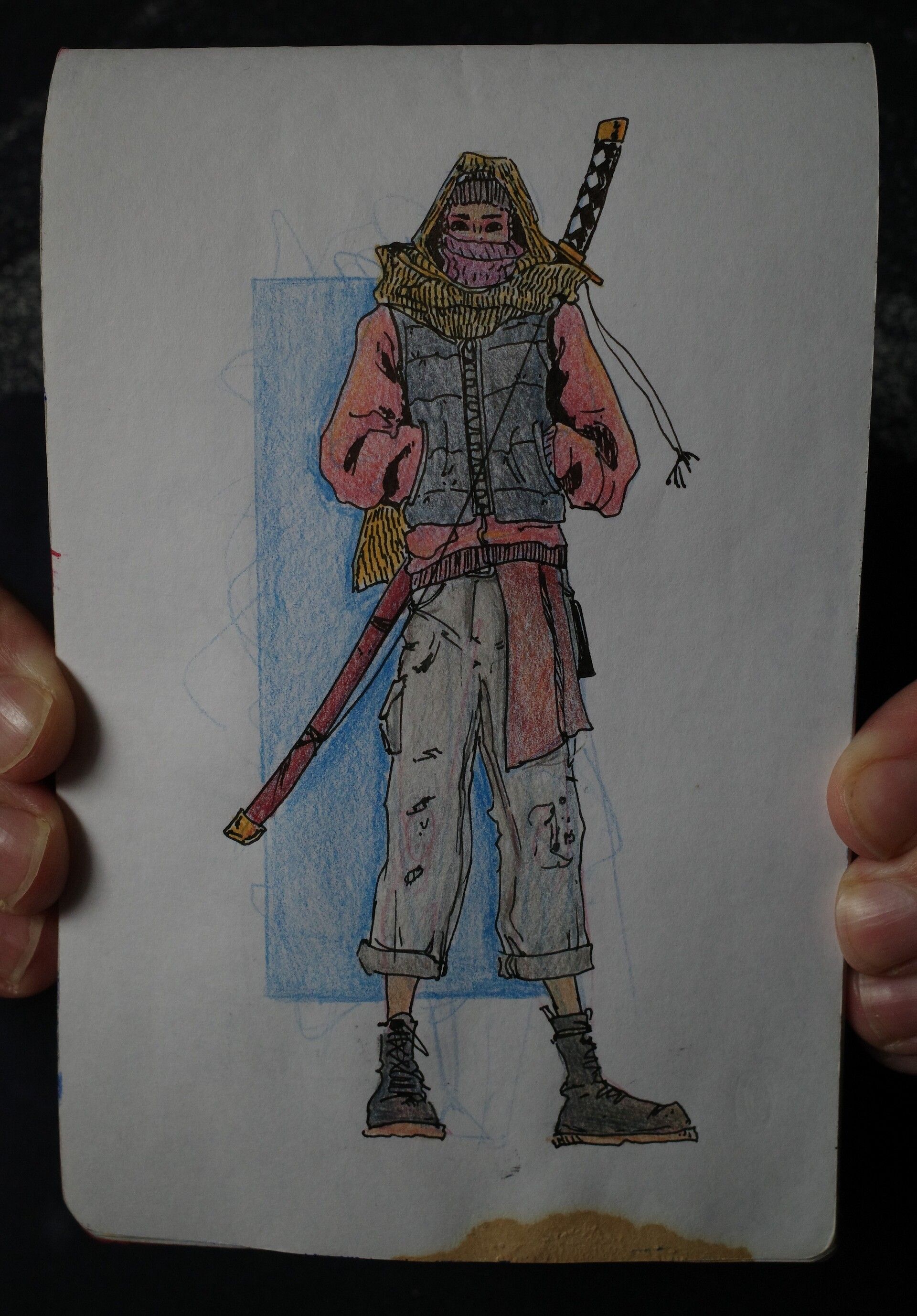 I’ve almost filled out my current sketchbook - and pretty quickly. It’s one of the fanciest and nicest feeling I’ve had, I’m liking it a lot! The only downside is that it didn’t have an elastic to hold it closed or a pocket, and I’ve come to really like that. So I made my own little attachment, and added a pen holder - a GREAT addition.