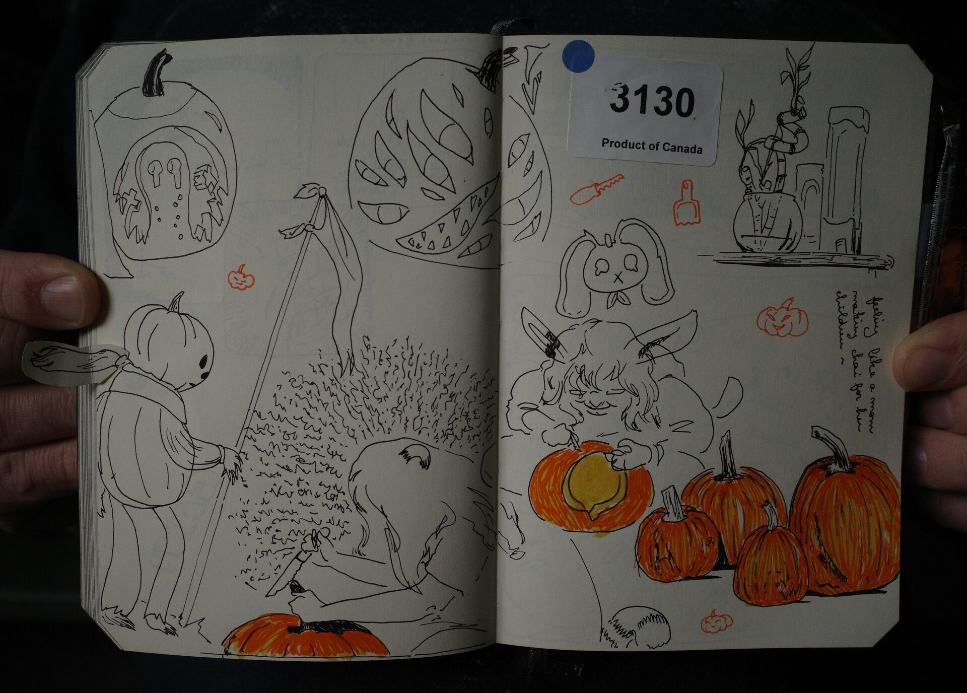 A sketched account of my first pumpkin carving night! 🎃